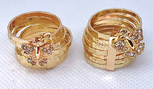 Gold Filled Multi Stone Ring Semanario and Butterfly Design With Crystal Gold Tone