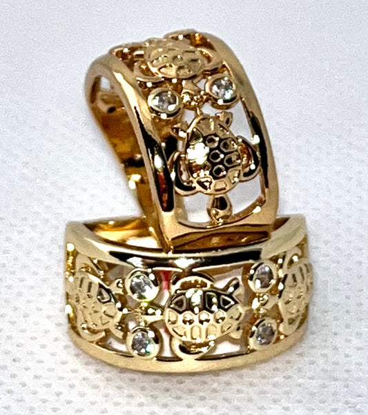 Gold Filled Multi Stone Ring Turtle Design With White Cubic Zirconia Polished Finish Golden Tone