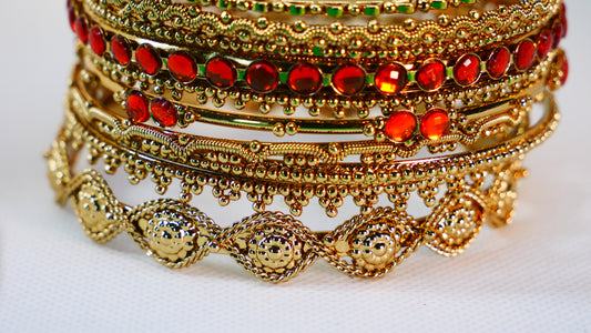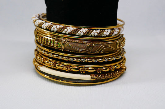 Gold & Brown Stackable Indian Bangles 15 Pcs