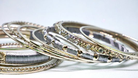 Silver & Ivory Crystal Stackable Bangles 11pcs