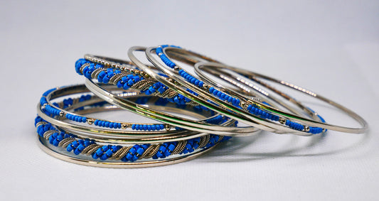Silver & Blue Stackable Bangles Bangle 13 Pcs