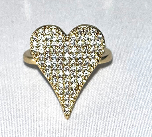 Gold Filled Multi Stone Ring Heart Design with White Micro Pave Polished Golden Tone