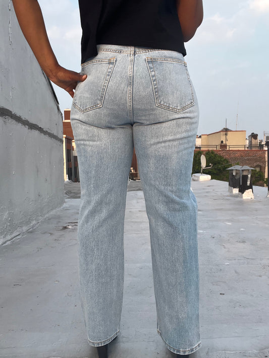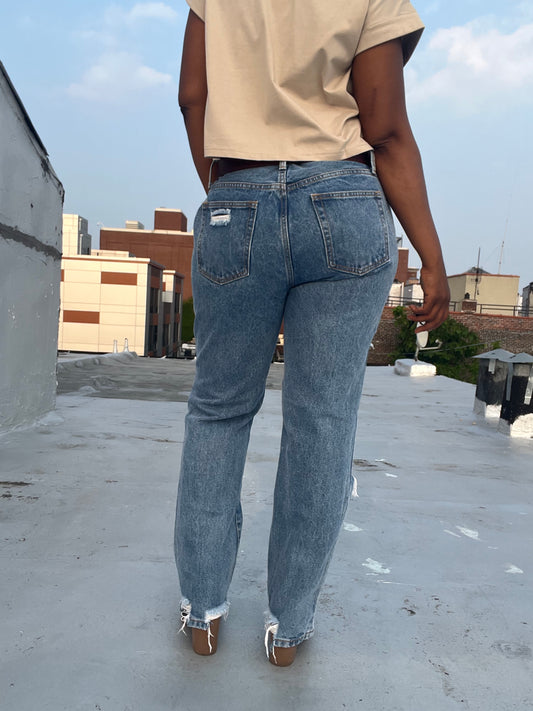 CROSSED LOW RISE HAND BLUSH PAINTING WIDE JEANS