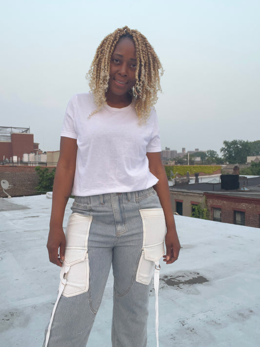 Regular Fit Stripe Elastic Waist Contrast Pocket Front Jeans