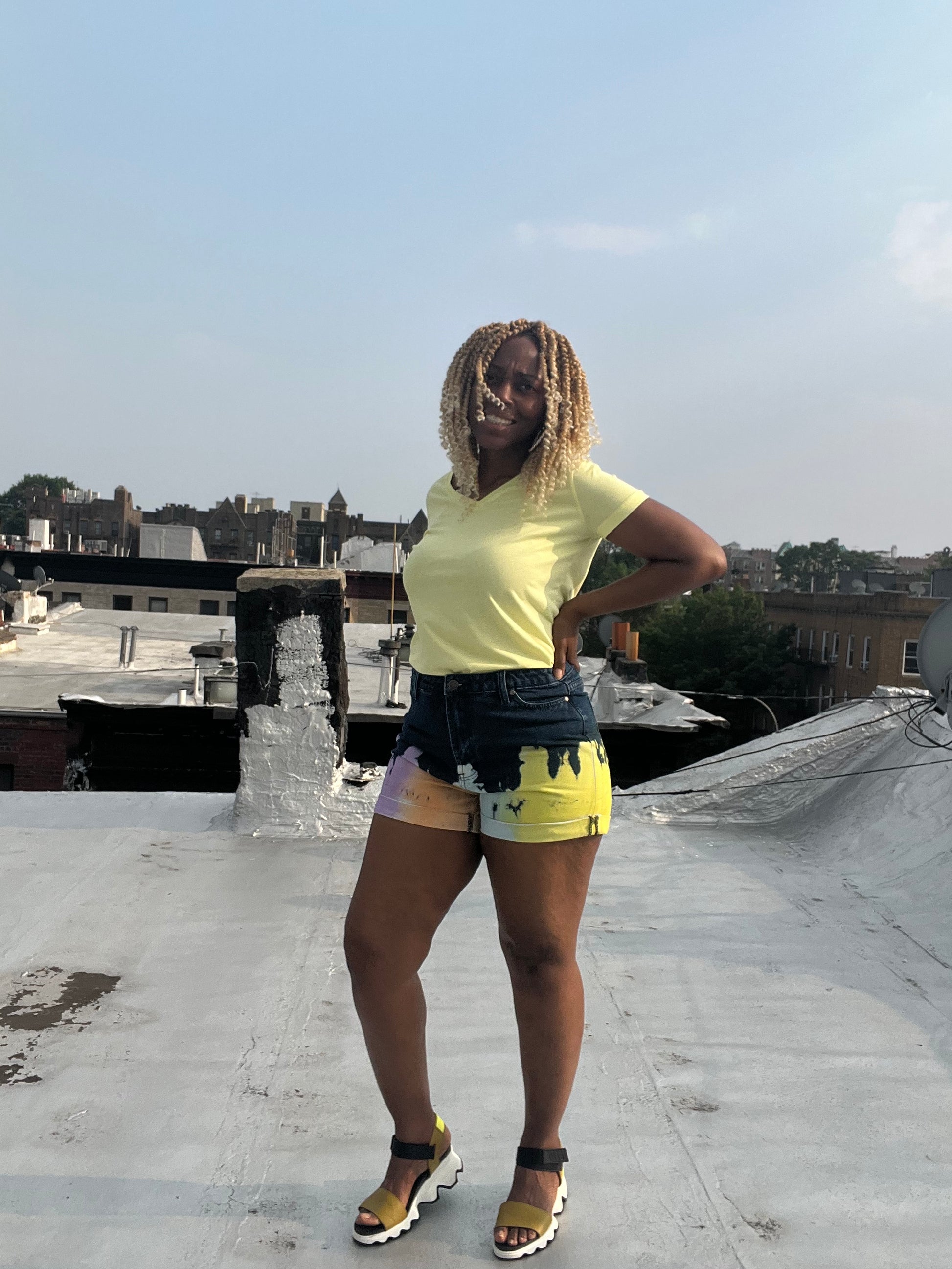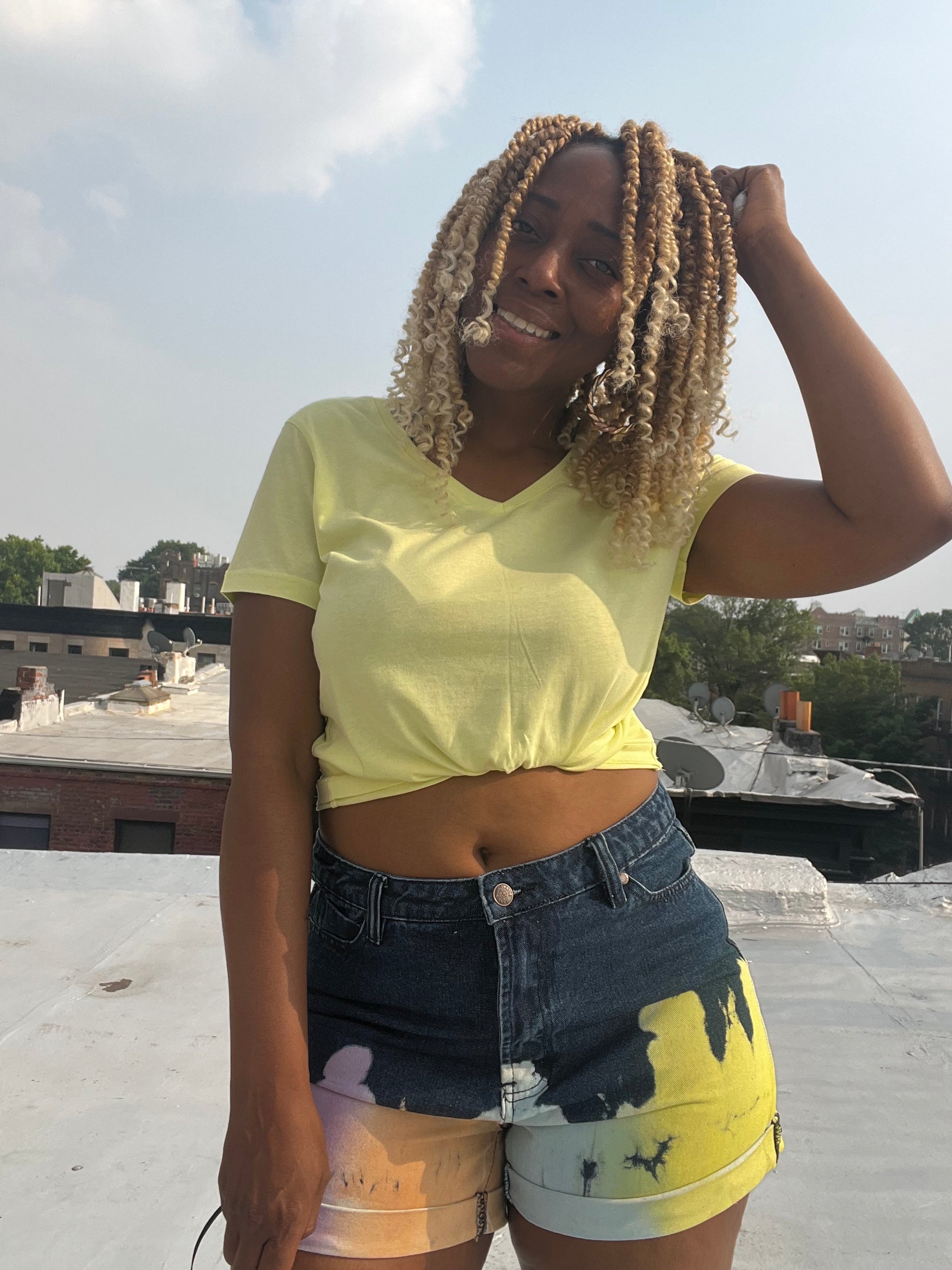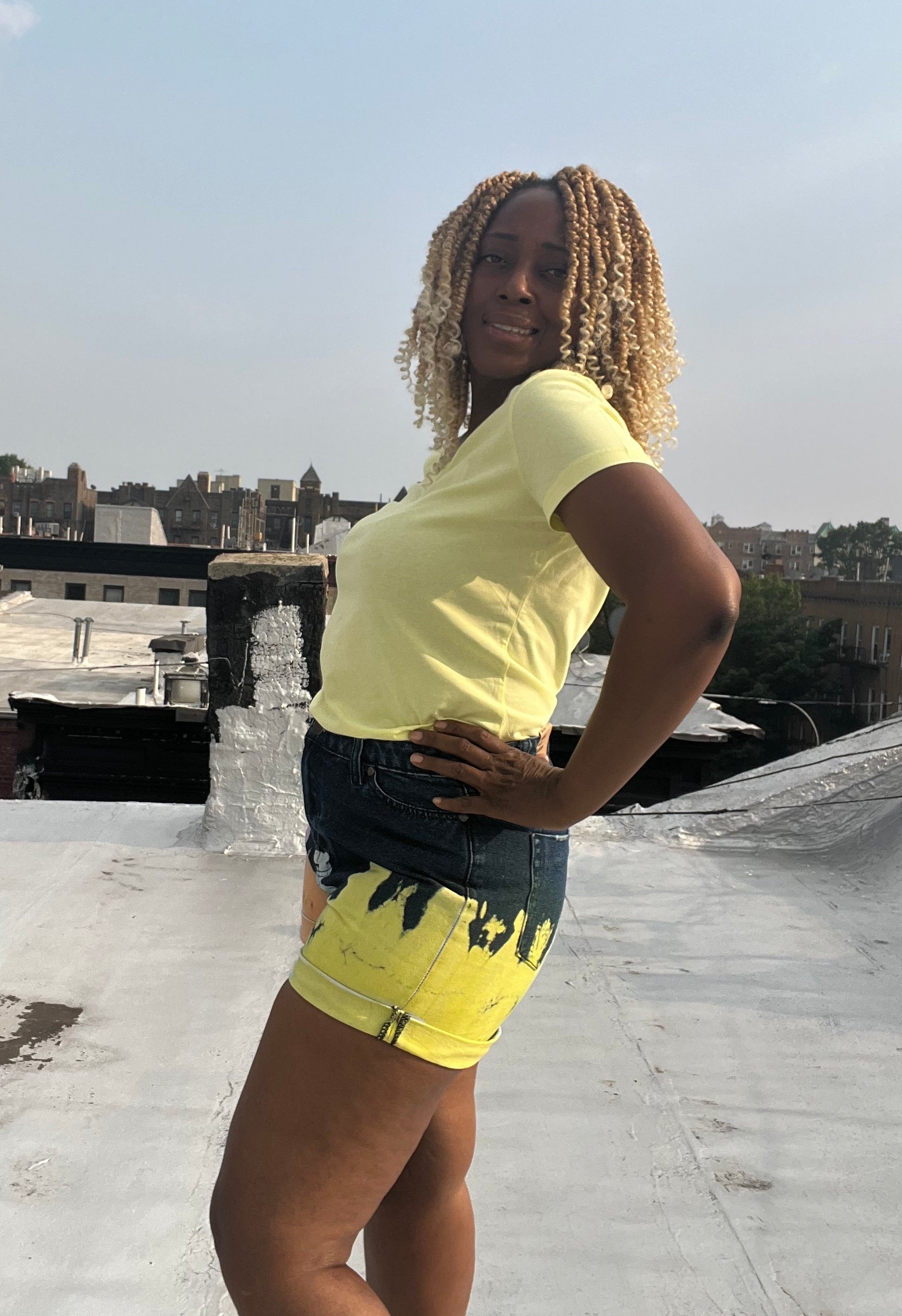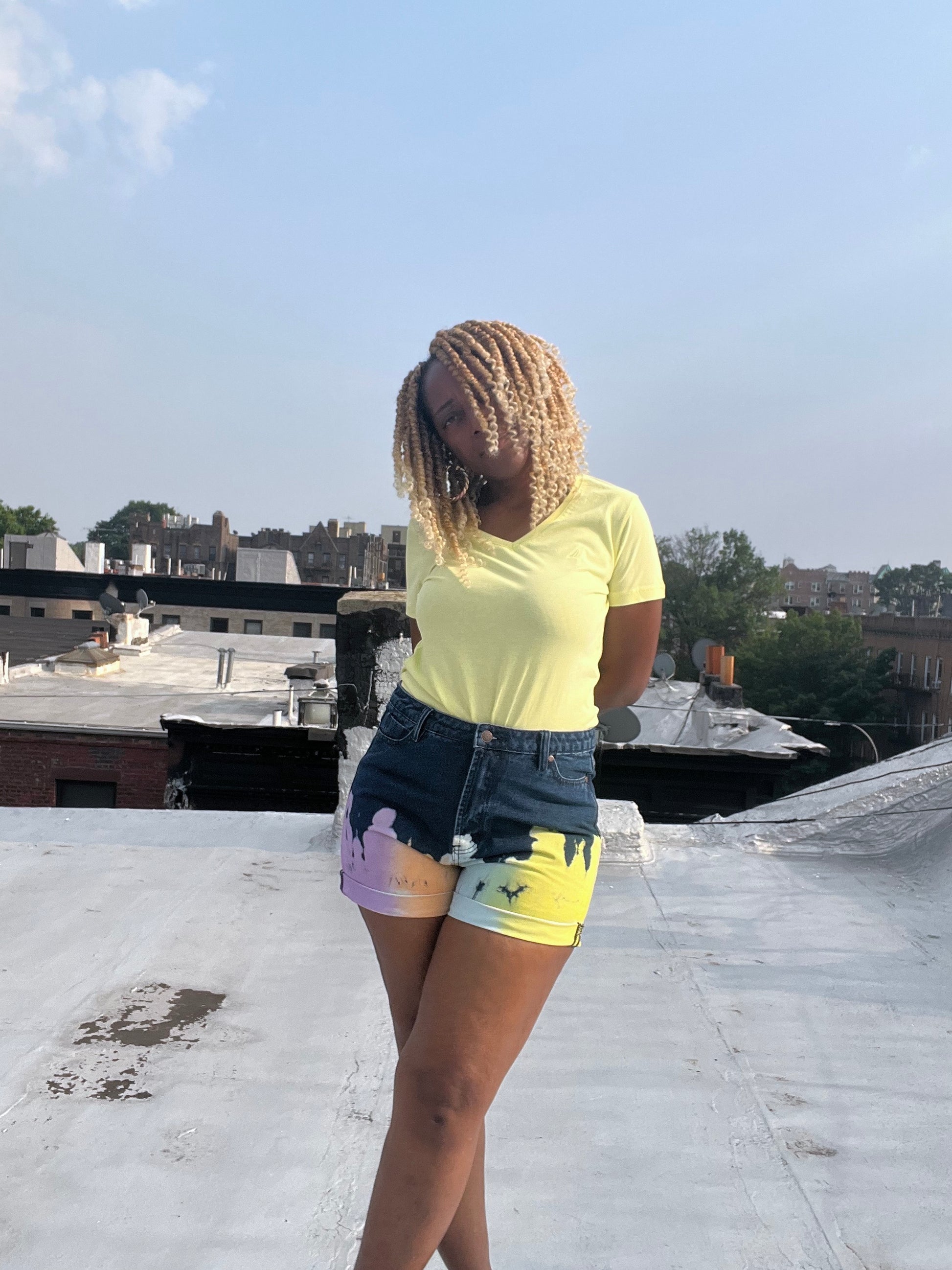 High Rise, Multi Color Paint Dipped Shorts -Each Garment is Hand Dipped, so no two will be the same — making these shorts a stand out in the crowd. 80% organic cotton and 20% recycled cotton, get to experience these one of a kind tie dye style shorts, that's eco-friendly and truly unique! Each garment is hand dipped, so no two will be the same — perfect for showing your creativity and individuality while being kind to the planet.